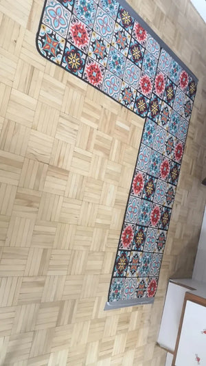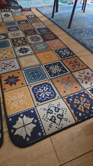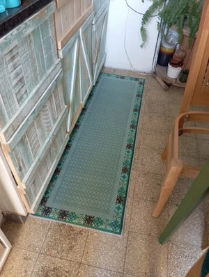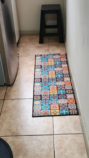 Available in various sizes, this rug suits different kitchen spaces, offering both style and practicality.